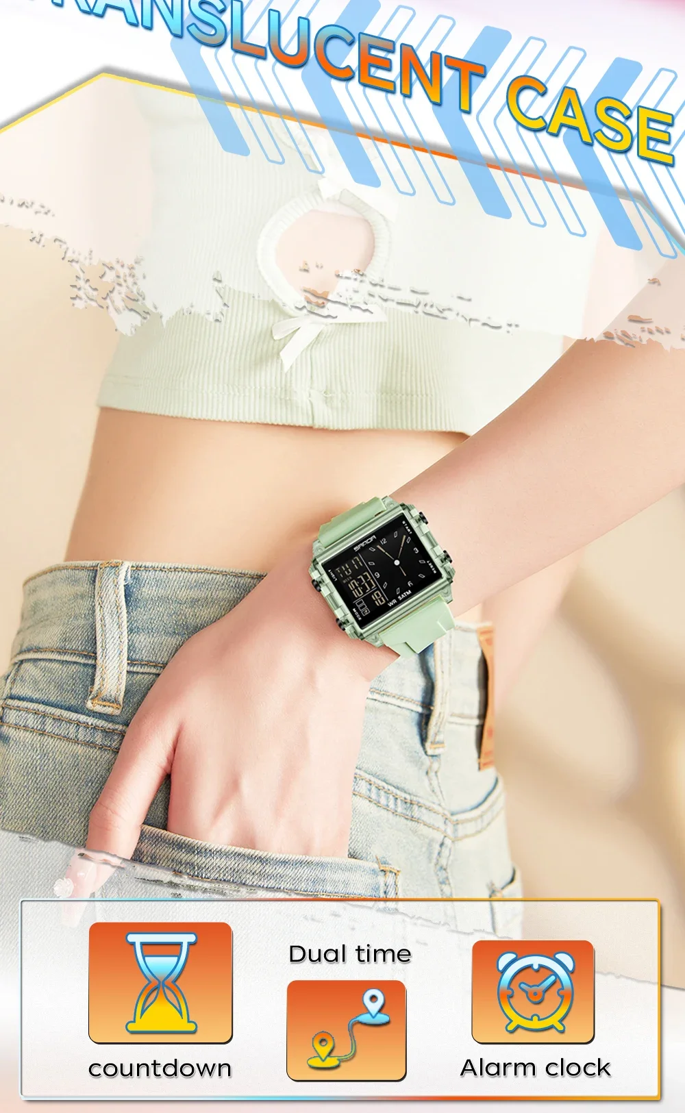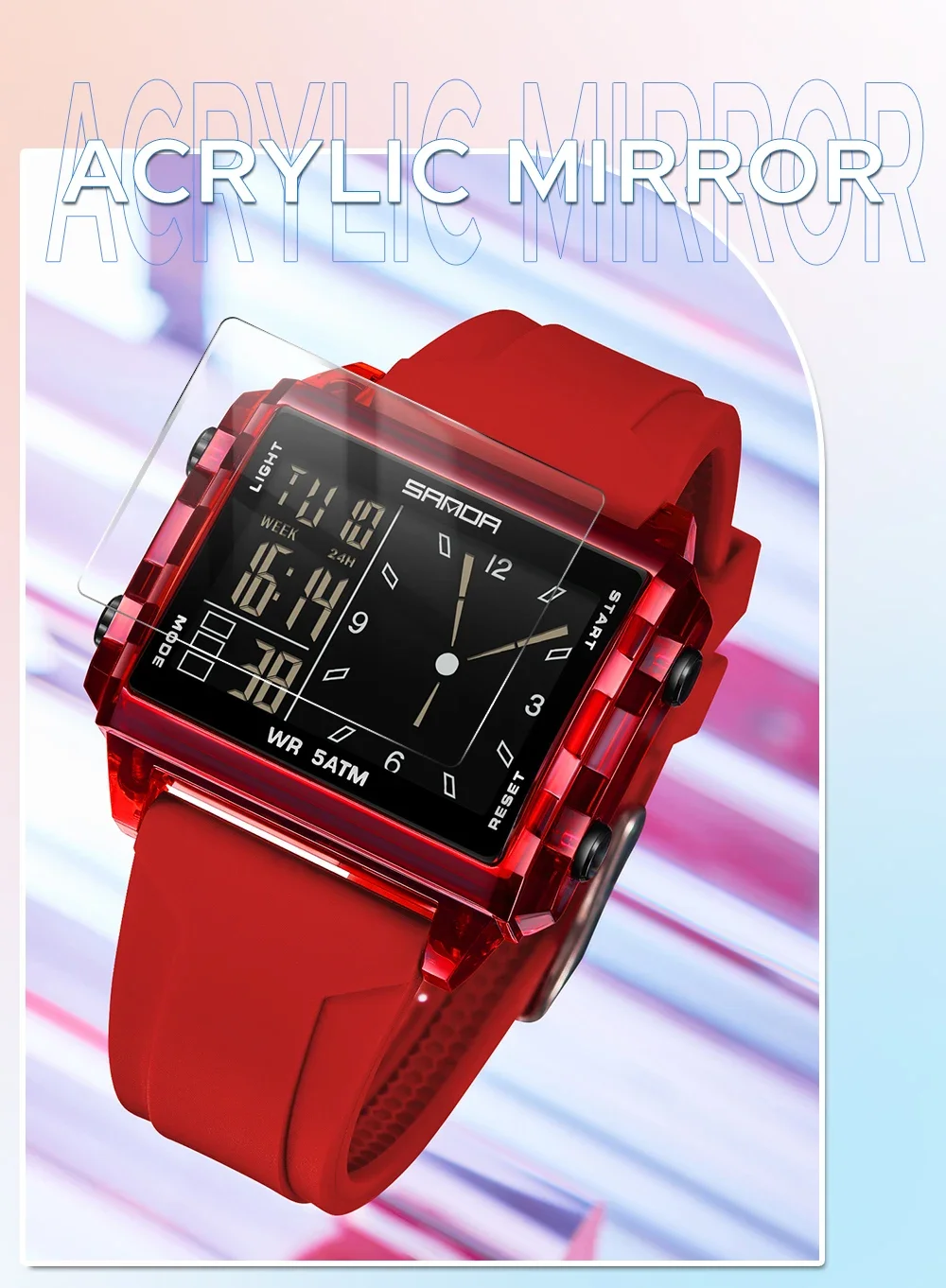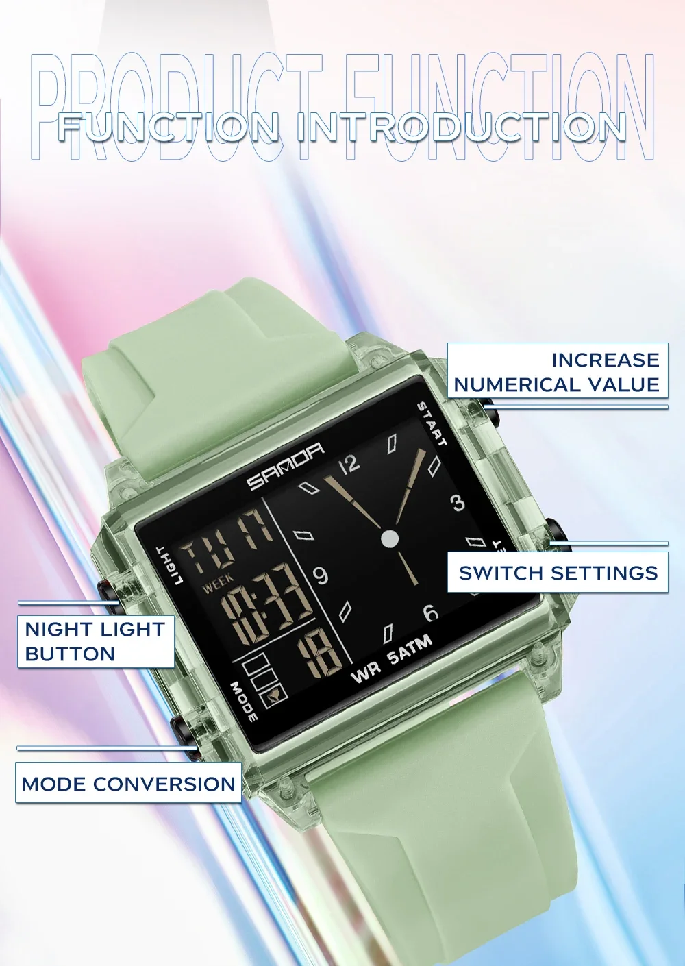 SANDA Fashion Electron Analog Watch for Men Women Waterproof Square Dial Count D